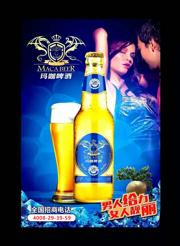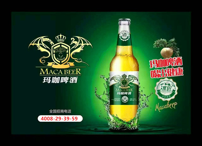 我们的啤酒从选料、糖化、发酵、过滤直到罐装,每一道工序都严格按照国际标准质量控制工艺和生产酿造管理工艺进行操作,所以我们的产品从内到外的整体质量都是优级产品,是消费者喝得放心的啤酒,也是我们广大经销商在市场运营中有质量保障的啤酒,我们的产品自投放国内市场以来,深受广大费者的青睐,市场覆盖面得到迅速扩展,市场网络也在快速地向全国各地延伸发展。冰匠玛咖养生啤酒,市场潜力无限,商机无限!