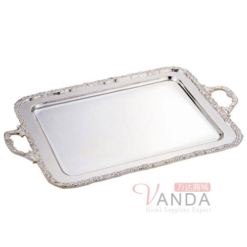 大号玫瑰边方形自助餐盘(银器
