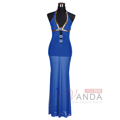ktv小姐服 兰色网长裙
