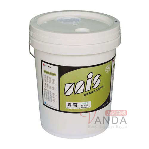 【商品描述】嘉奇氧漂粉是一种优质洗衣房用氧漂粉,适用于商业、医疗机构和一般洗衣房。洗涤液温度应在 70-90℃,用于主洗。它含有过硼酸盐、碱盐和漂白稳定剂。过硼酸盐水解会释放出过氧化氢。必须注意,该产品不能用于带有血迹的织物。血迹遇到过氧化氢会凝固,并不容易去除。因此,在洗涤第一阶段时 (时间=0~7 分钟),织物应绝对避免接触过氧化氢漂白剂。建议在预洗中,用含酶产品处理织物上的血迹。